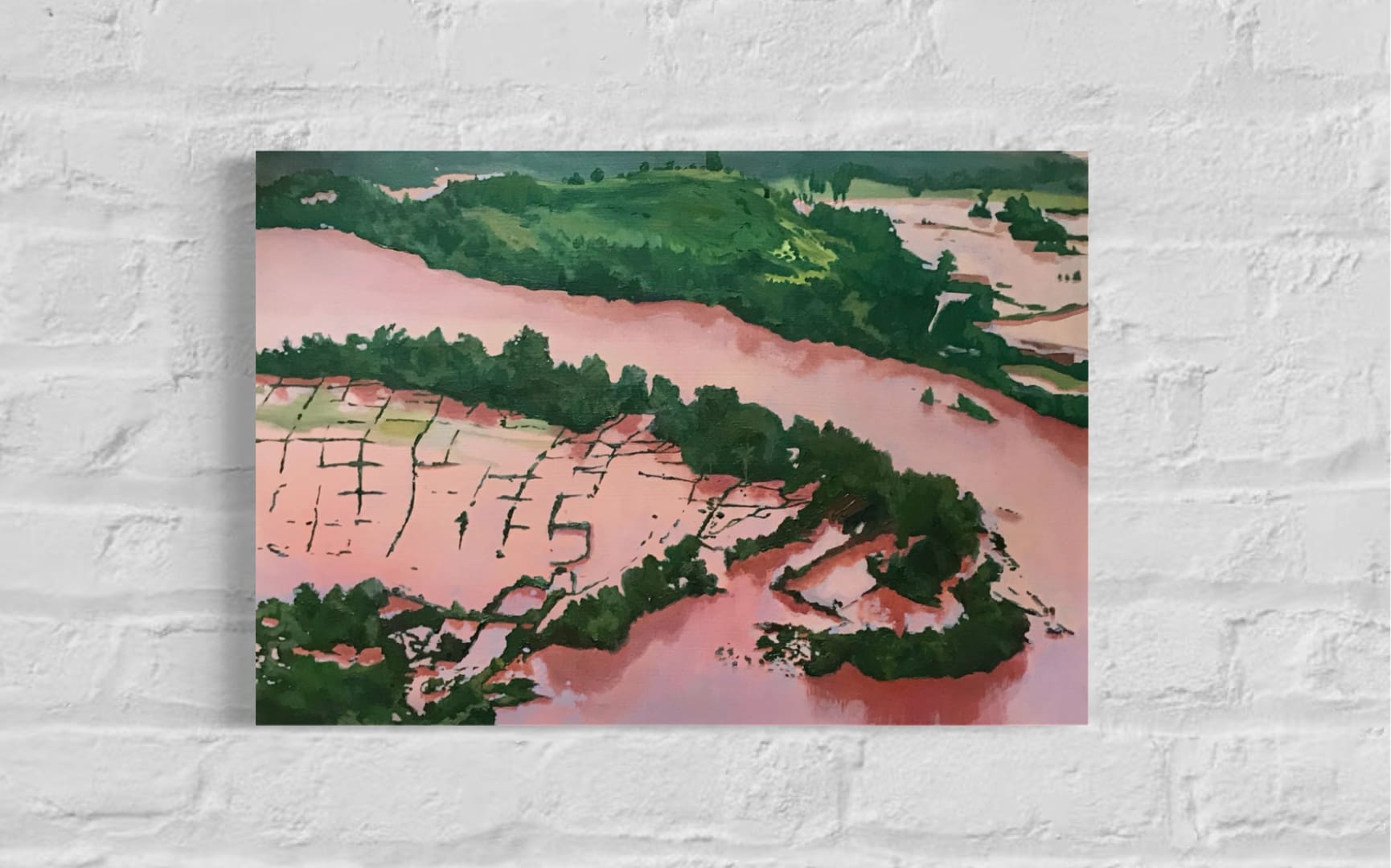 I have been embarking on making paintings from news reports on climate change again and I wanted to record the floods in my beloved Kerala, as it is somewhere close to my heart having visited there in 2017. Drawing attention to the plight of the residents of the area is important to me.