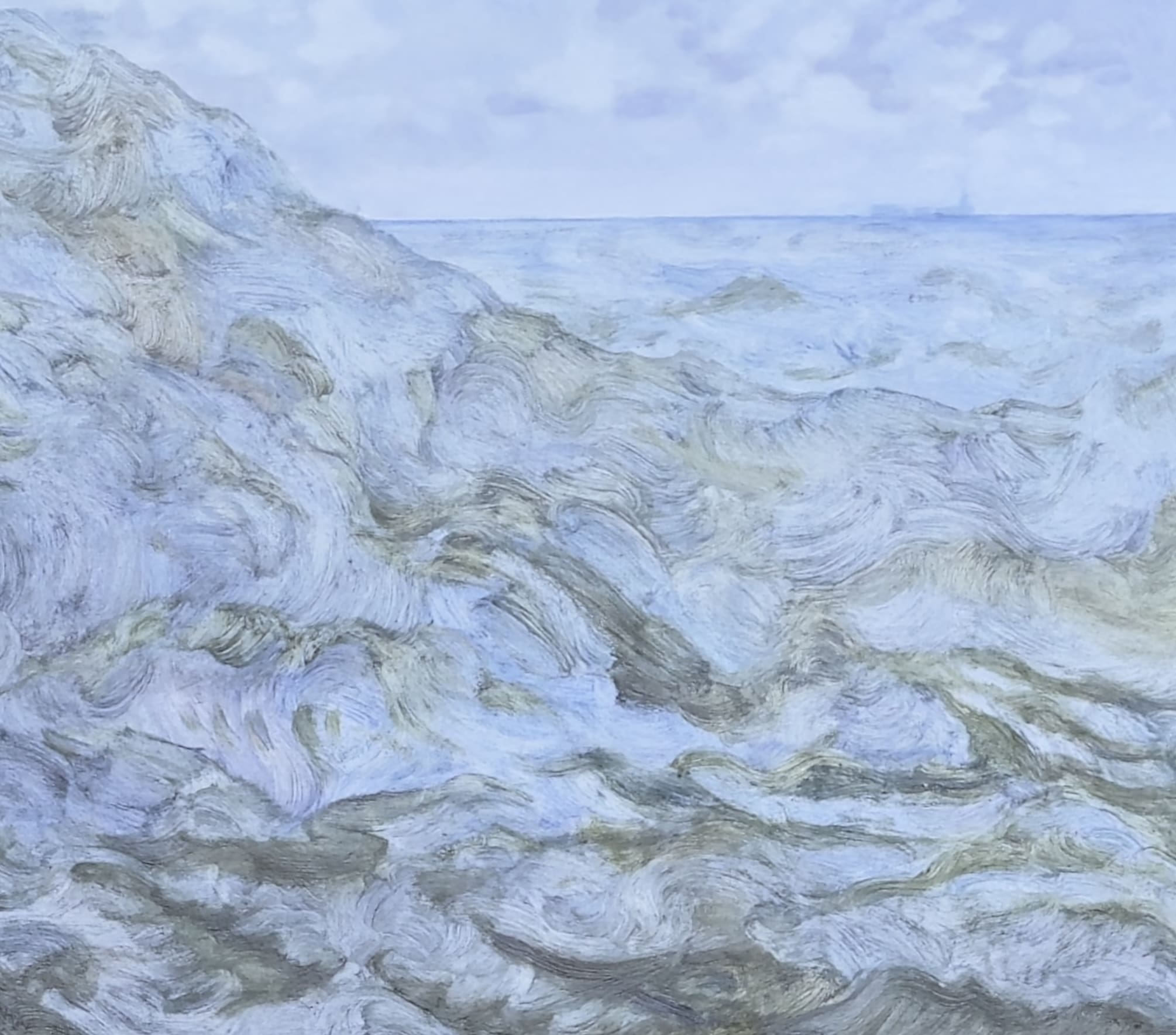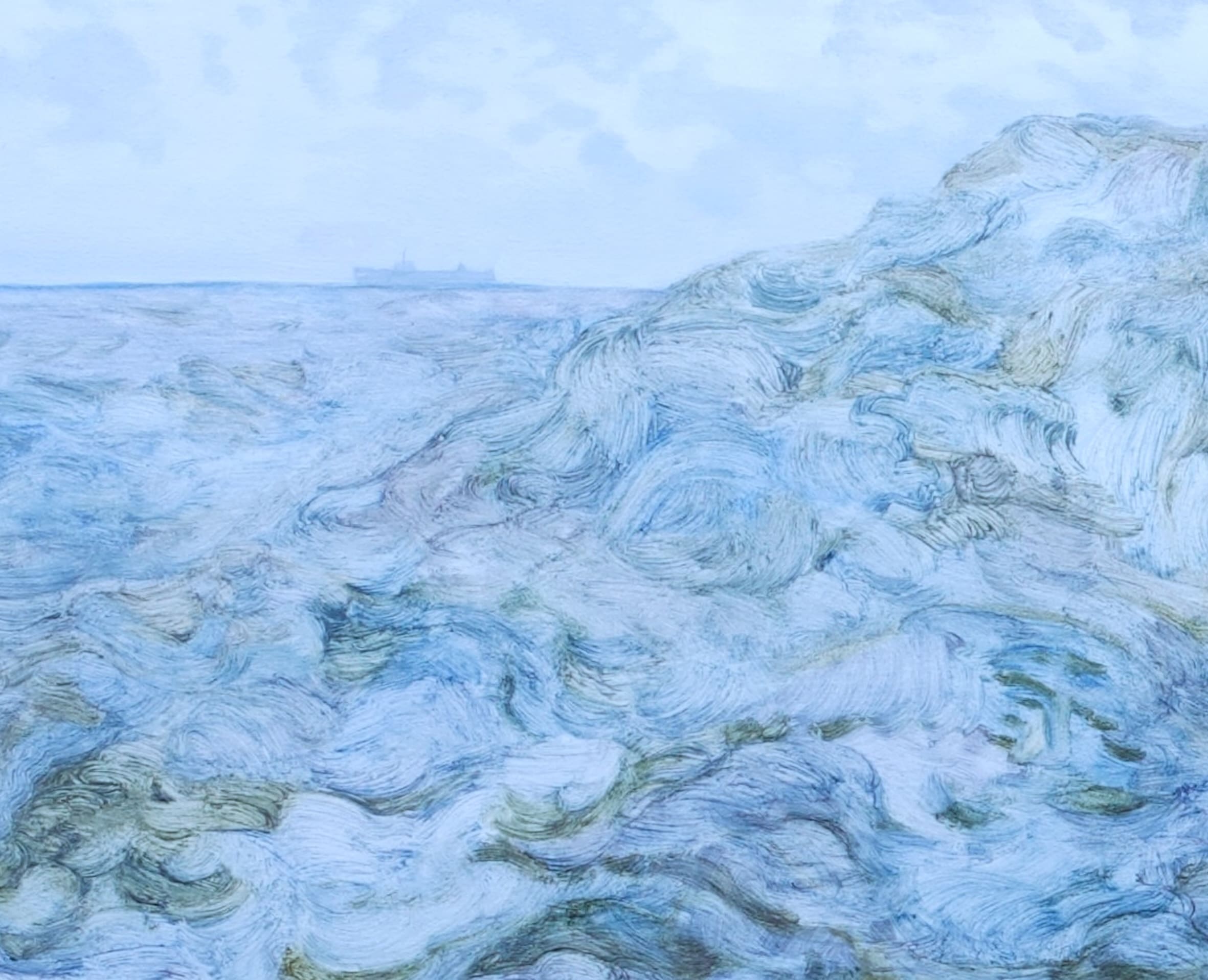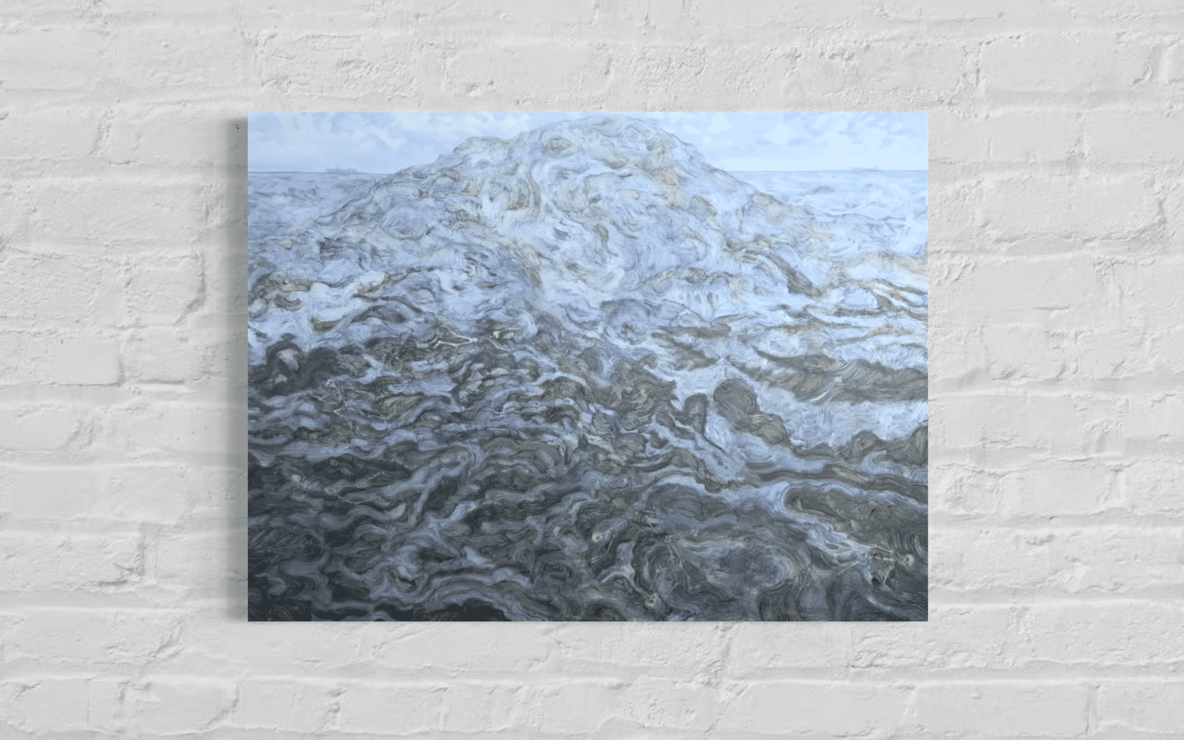 The painting addresses the unknown and power of the sea, and our industrialisation of its waters.